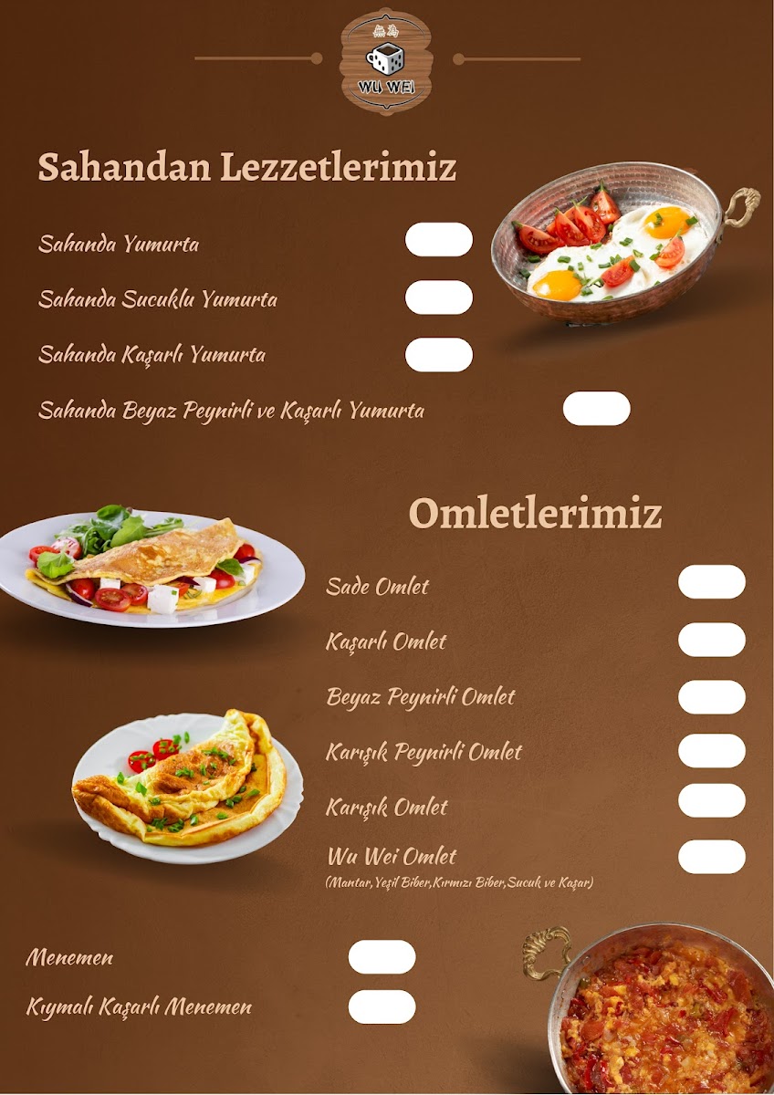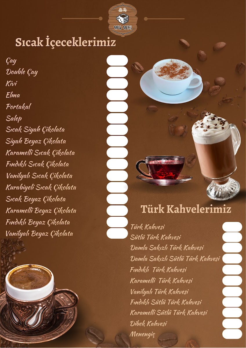 Wuwei Oyun Cafe Menu